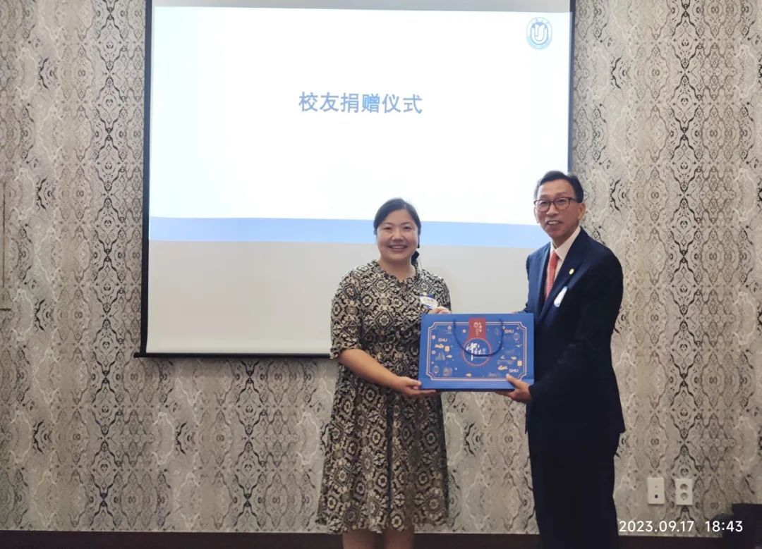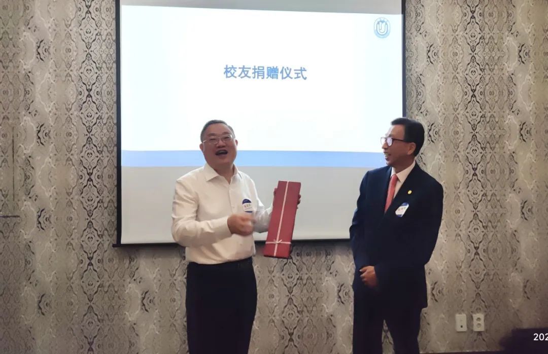 随后郭甲烈(곽갑열)校友为庆祝韩国校友会成立进行了捐赠。beat365手机官方网站国际部党委书记王丽娜向郭甲烈校友颁发捐赠证书并感谢他对beat365手机官方网站国际校友工作一直以来的支持。王老师还为校友们捎来了带有beat365手机官方网站logo的特色中秋月饼。
