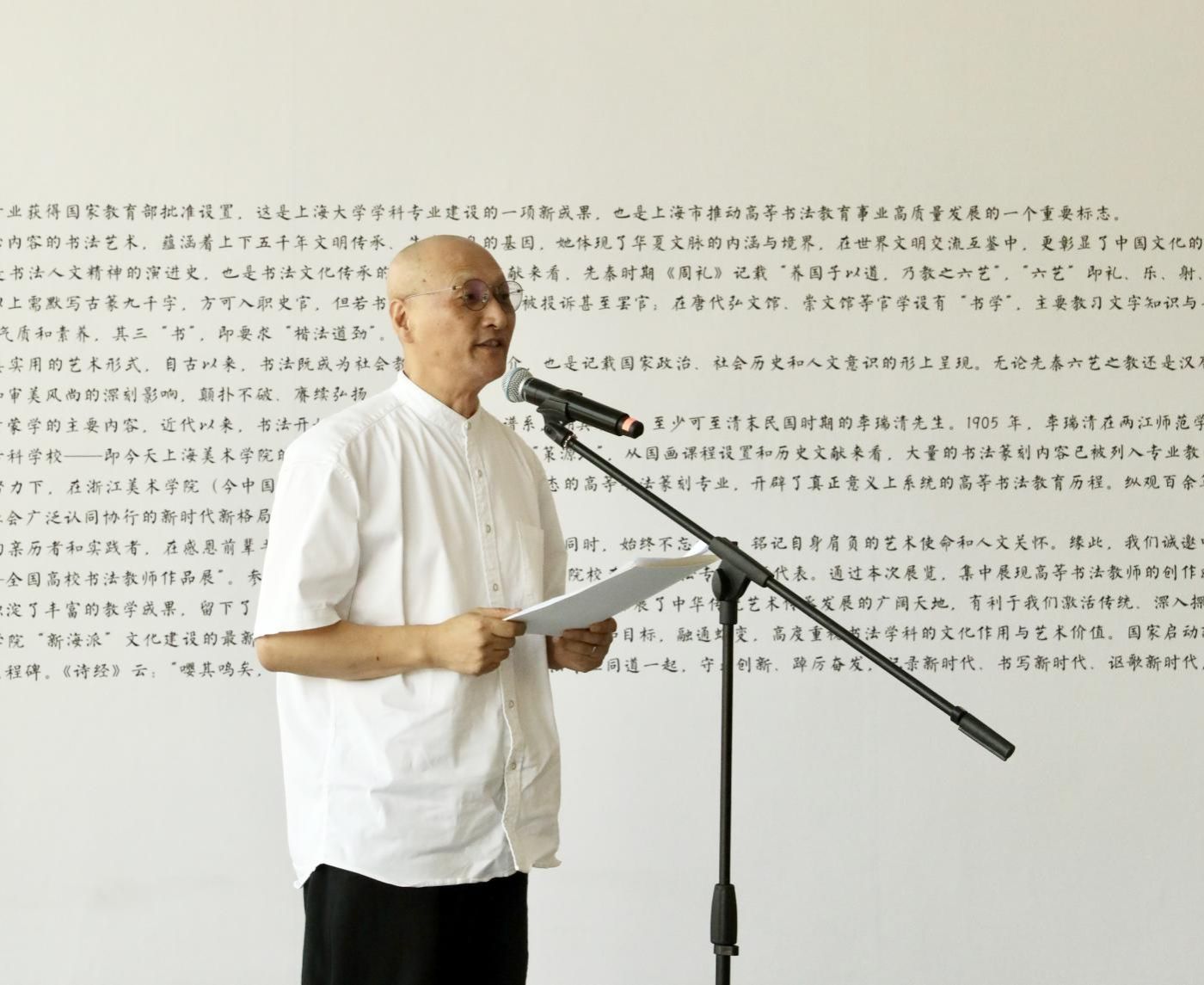 上海美术学院院长曾成钢致辞并宣布展览开幕。曾院长表示,高校书法名师和名家们的佳作不仅体现了汉字书法的造型美、古典美,还代表了当代书法教学前沿的学术风范。上海美术学院继续加强高校美术学科的交流与合作,共同推动高等书法教育事业繁荣发展。