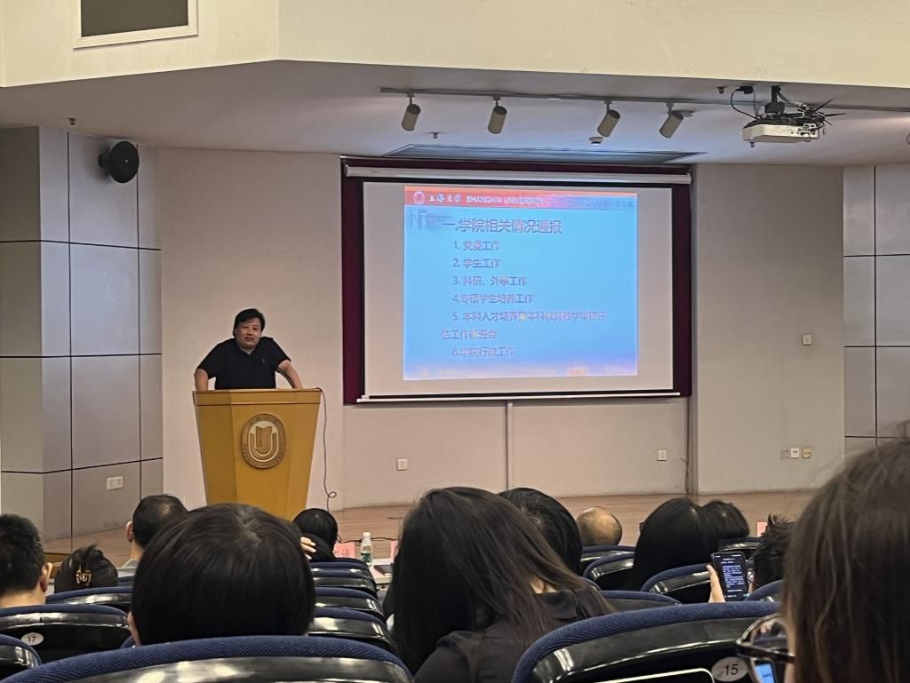 本次全院大会议程主要分为学院相关情况通报,本科教育教学审核评估工作推进会和师德师风教育学习会三部分。首先,孟添介绍了学院党委上半年以学习贯彻习近平新时代中国特色社会主义思想主题教育为契机,统筹推进各项工作并取得一定成效,下半年将持续加强学院党委的政治领导核心作用,将主题教育的成效转化为学院高质量发展的强大动力,不断推进学院事业取得新成效;另外着重强调当前的重要任务之一是本科教育教学审核评估工作,希望老师们全力以赴,全员参与,形成迎评促建的良好工作氛围;发挥好党支部战斗堡垒作用和党员先锋模范作用,强化身份意识、纪律意识、责任意识,推动审核评估各项任务落地落实,顺利开展。