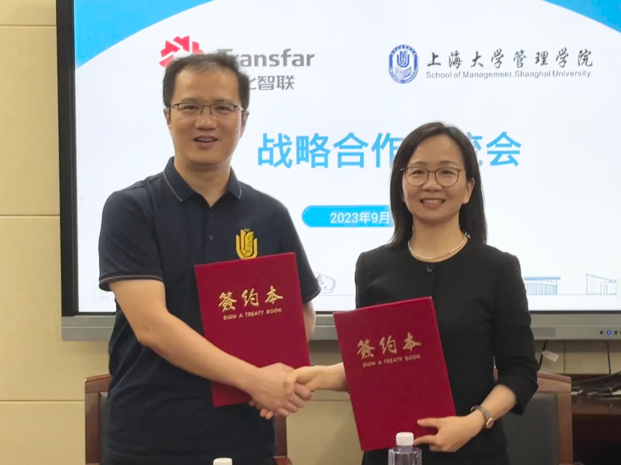 会上,镇璐院长代表管理学院和沈亚书记代表传化智联签署了校企战略合作协议。协议的签署将推动双方在党团共建、科研合作、人才招聘和培养等多领域开展更加紧密的合作,共同培养更多的优秀人才,为社会发展贡献更多力量。