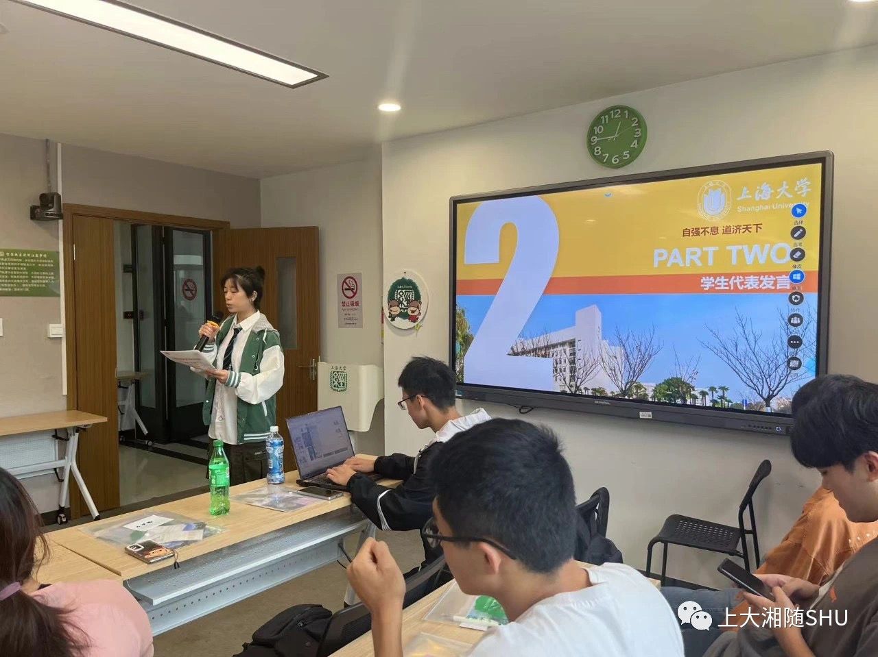 最后,余佳豪同学对湖南招宣组志愿团队——上大湘随进行了介绍并期待更多的同学加入进来服务湖南考生。