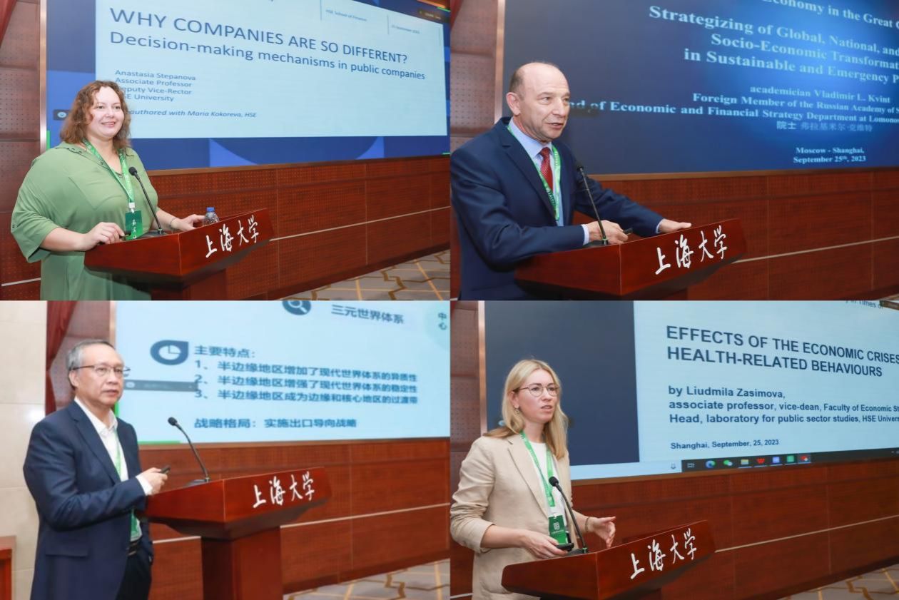 在随后举行的会议论文演讲环节,来自各个高校的学者们依次进行了学术报告。来自俄罗斯国家高等经济大学的副校监Anastasia Stepanova教授用高维分析方法研究了上市公司的治理结构和决策机制及债务情况的关系;俄罗斯科学院院士、莫斯科罗蒙诺索夫国立大学战略研究中心主任Vladmir Kvint教授介绍了面对全球和地区层面的社会和经济转型,如何对危机和突发情形进行战略管理;beat365手机官方网站经济学院特聘教授欧阳峣分析了结合百年未有之大变局的背景,世界产业格局如何从传统的雁行模式逐渐演变为了有多个国家在不同产业链成为链主的多极雁行模式;俄罗斯国家高等经济大学的Liudmila Zasimova教授以酒类消费行为为例,系统阐述了新冠疫情的冲击会如何影响个体和长期健康相关的一些行为。
