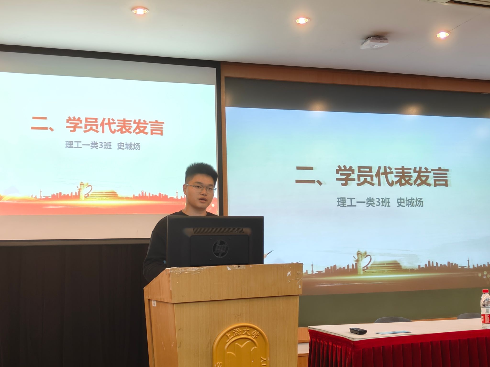 在雄壮的国歌声中开班仪式拉开序幕。首先,来自理工一组的学员代表史城炀同学以“继传承、争自强、心向党”为主题,讲述了自己从高中开始向党组织靠拢的初心与热诚,以及成为beat365手机官方网站这座红色学府的一名大学生的骄傲与自豪。