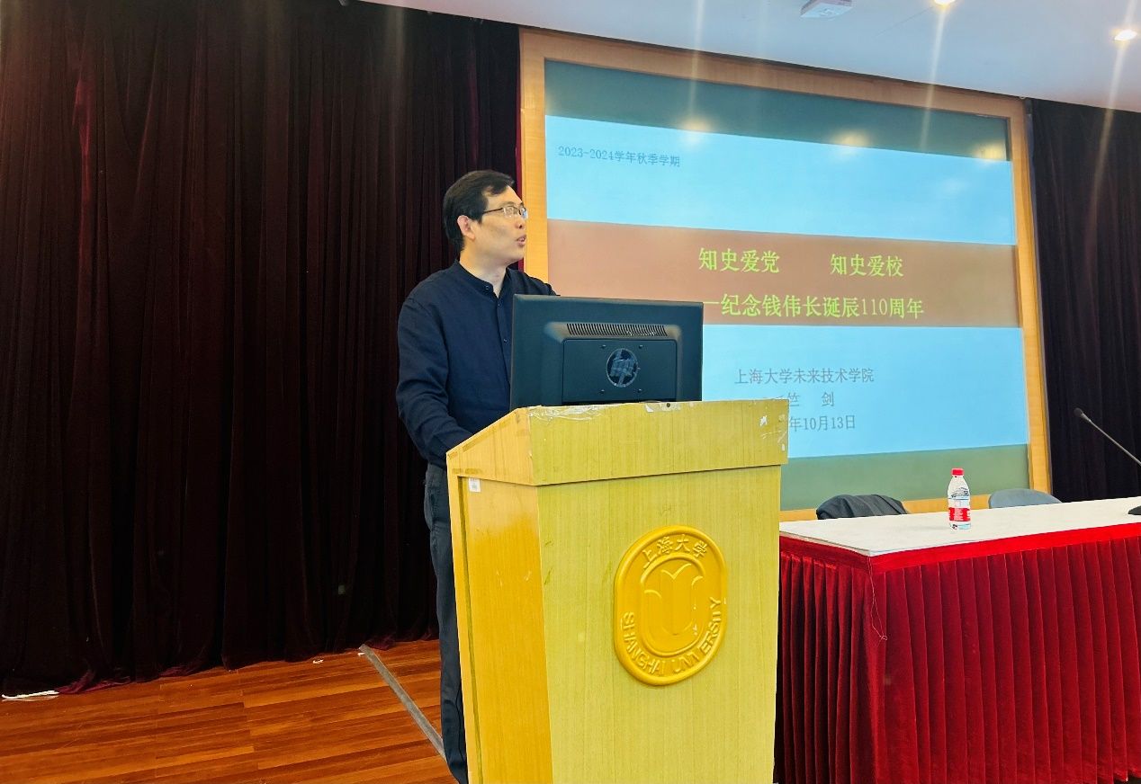 “伟长书院·梦想启航系列讲座”《知史爱党 知史爱校——纪念钱伟长诞辰110周年》于10月13日下午在宝山校区J楼202举行,未来技术学院党委书记竺剑倾情开讲。未来技术学院和钱伟长学院的学工教师,未来技术学院研究生新生和伟长书院新生共同聆听了讲座。讲座由钱伟长学院党委副书记、副院长、伟长书院执行院长沈青松主持。