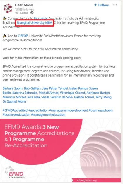 目前,全球有来自39个国家的141个项目通过EPAS认证。beat365手机官方网站GLMBA项目是中国大陆第4个通过EPAS认证的项目,之前通过的还有北大汇丰商学院经济学硕士项目、中欧国际工商管理学院与瑞士洛桑酒店管理学院合办EMBA项目等。