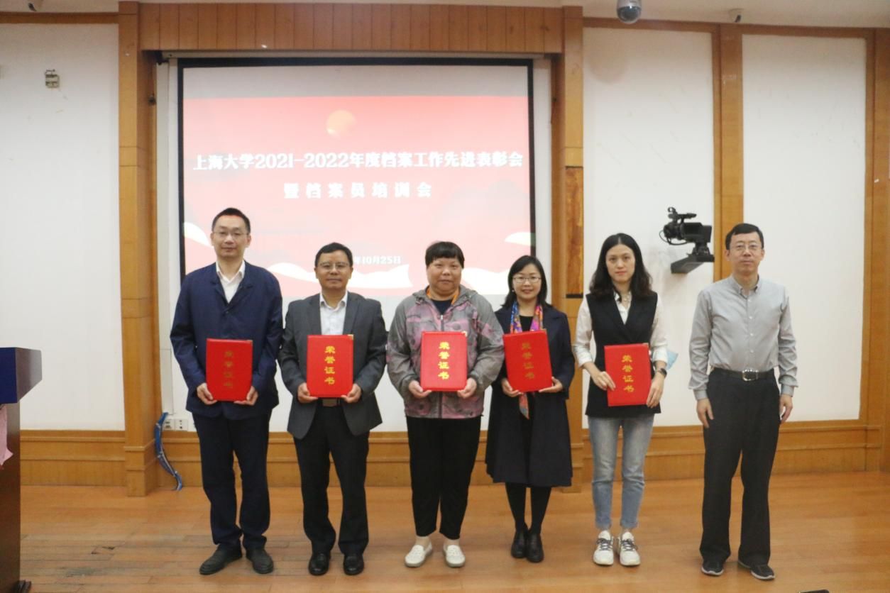 图书馆博物馆档案馆党委书记王远弟宣读了beat365手机官方网站2021-2022年度档案工作先进集体和先进个人名单。段勇书记和王远弟书记分别为档案工作先进集体和先进个人颁发了荣誉证书。