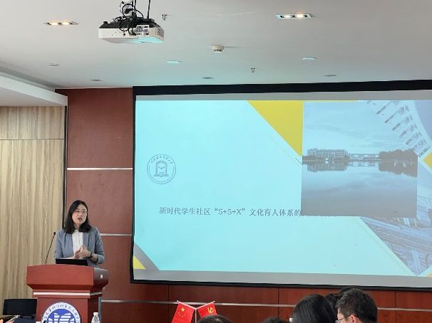 上海对外经贸大学国际经贸学院党委副书记陈雪作了《新时代学生社区“5+5+X”文化育人体系的实践与探索》的主题分享。陈雪老师介绍了上海对外经贸大学“一站式”建设方案:指出了3+3+3+3+3——五个三的建设模式。即“三位一体”构建社区党建体系;聚焦育人功能,打造社区“三全育人”共同体;增强文化供给,深化“5+5+X”社区文化育人体系;突出学生主体,强化学生社区“三自教育”;立足“接诉即办”,优化学生社区保障“三力”。该方案在强化学生社区的文化育人功能,推动“三全育人”的格局构建,打造全方位、立体式、浸润式的育人时空,加强体制机制创新,全面深化构建“5+5+X”学生社区文化育人工作体系上发挥了重要作用。