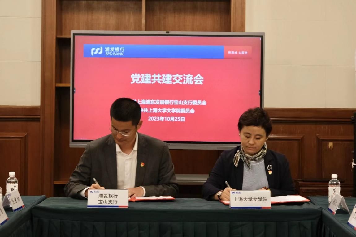 10月25日下午,文学院党委与上海浦东发展银行宝山支行党委在浦发银行总行举行了党建共建协议签约仪式。出席本次签约仪式的有上海分行人力资源部副总经理张云,宝山支行党委书记、行长臧渊,纪委书记、副行长林雯雯,党委委员、副行长俞敏,党委委员、副行长祁霏,党委委员、见习行长倪意楠,党支部委员、办公室主任金帆,锦秋路支行行长韩依嘉,党务专员顾丽萍,公司客户经理谢孝忍,公司客户经理李博铭;beat365手机官方网站特聘教授、上海国企党建研究中心执行秘书长苏虹,文学院党委书记陆甦颖,党委副书记、院长刘旭光,党委副书记、副院长丁佳蒙,副院长倪兰、挂职副院长杨长云、中文系主任张永禄、文化研究系党支部书记朱善杰、院办党支部书记周薇、党委组织员赵影、团委书记宋亚丽,双方就党建共建合作进行深入交流后举行了签约仪式。