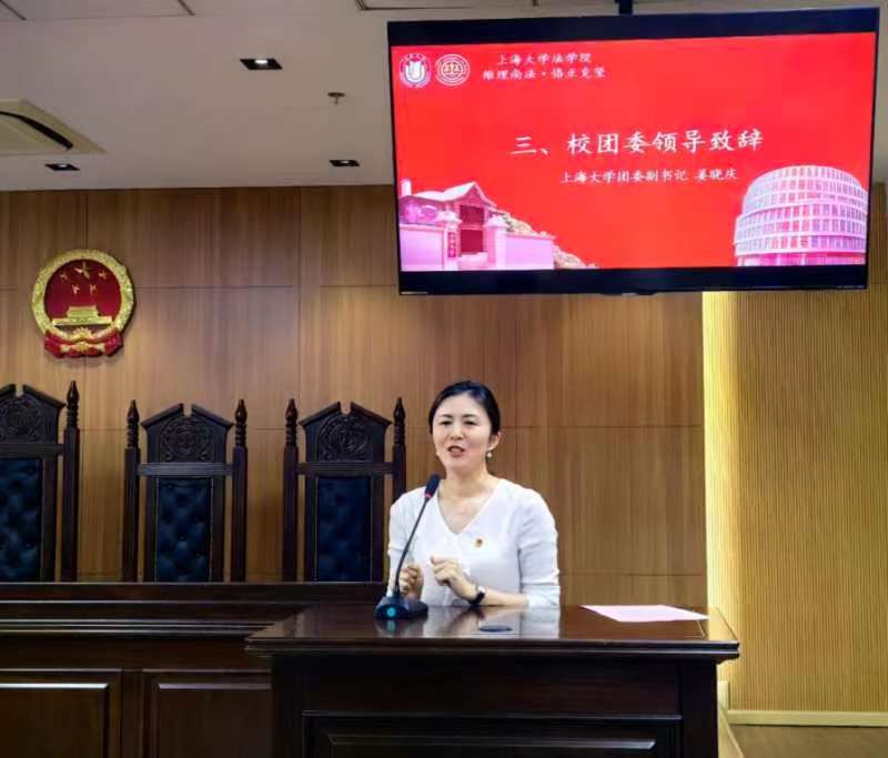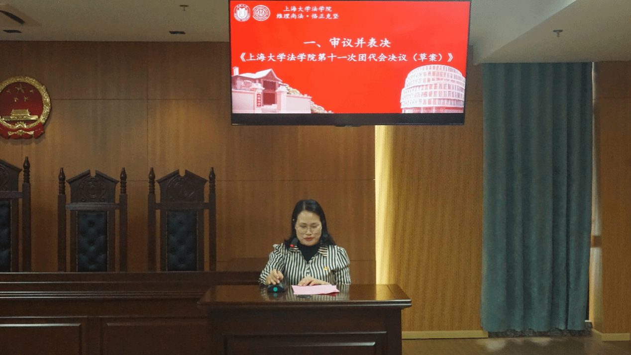 10月27日中午,共青团beat365手机官方网站法学院第十一次代表大会在宝山校区东区4号楼模拟法庭召开。校团委副书记姜晓庆,马克思主义学院团委副书记黄丽娜,法学院党委书记徐国明,法学院党委副书记、副院长于伟,法学院团委副书记杨晓彤,法学院本科生辅导员王琦以及七十余名学生团员代表出席。会议由学院团委书记林建玲与团委委员、2021级研究生李金城主持。