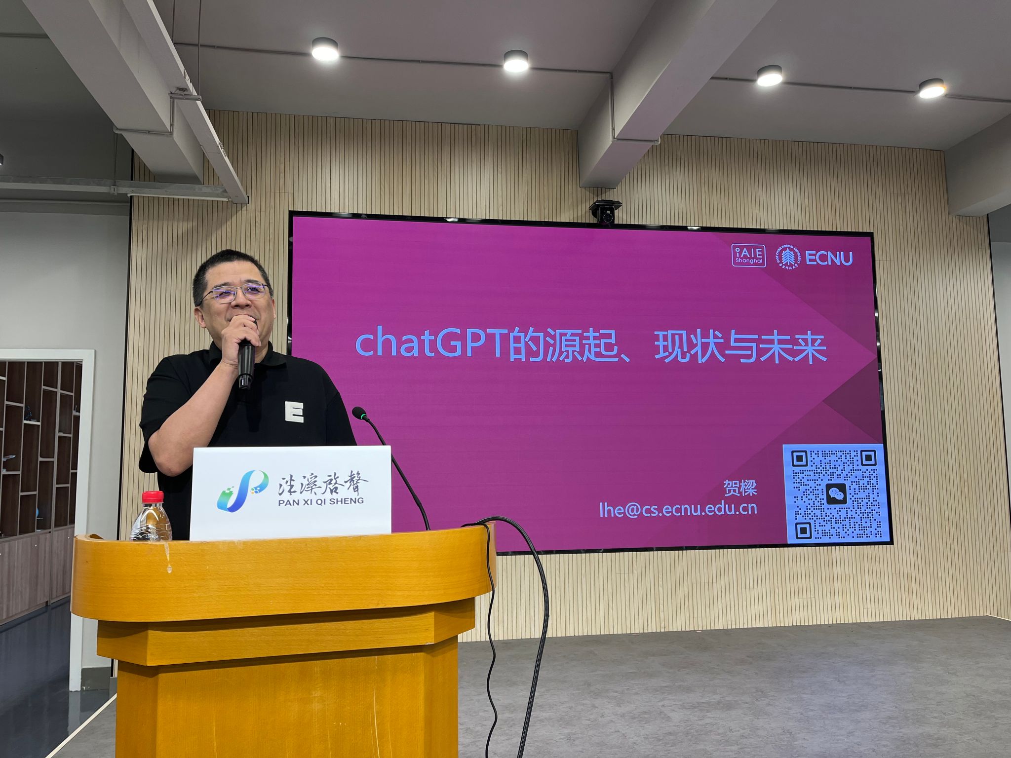 本次讲坛特邀华东师范大学计算机科学与技术学院副院长,九三学社上海市委员会委员、常委、九三学社华东师范大学委员会主委贺樑教授做题为《ChatGPT的源起、现状与未来》报告。贺教授以年轻人为找对象咨询ChatGPT,得到ChatGPT的“正统”回答开场,引发全场会心笑声。随后,贺教授从ChatGPT如何由GPT起源,如何通过给定限定条件来给出最优回答、具备基本常识和纠错能力、在广泛任务上展现出惊人性能等等,向大家展示了ChatGPT的真实现状。指出,ChatGPT是人工智能迎来网景/iphone时刻的标志,是通用人工智能技术发展的重要里程牌。贺教授从ChatGPT推动大模型成为AI时代的操作系统,会引发个人、机构及国家的不对称竞争和信息与国家安全的风险三个方面,详细分析了ChatGPT将带来的产业影响和社会影响,并展望了ChatGPT的未来和对人类的启示。科学详实的分析,幽默生动的讲解,让在座者不仅了解了ChatGPT概貌,更引发未来如何利用ChatGPT技术造福人类的思考。互动环节,大家纷纷就ChatGPT技术的深入发展对人工智能的影响、未来人类该如何学习、ChatGPT对科学研究以及未来职业的影响、以及该如何提前进行知识储备等热点话题进行提问,贺教授一一做答,并对一些ChatGPT技术的认识误区畅谈了个人见解。