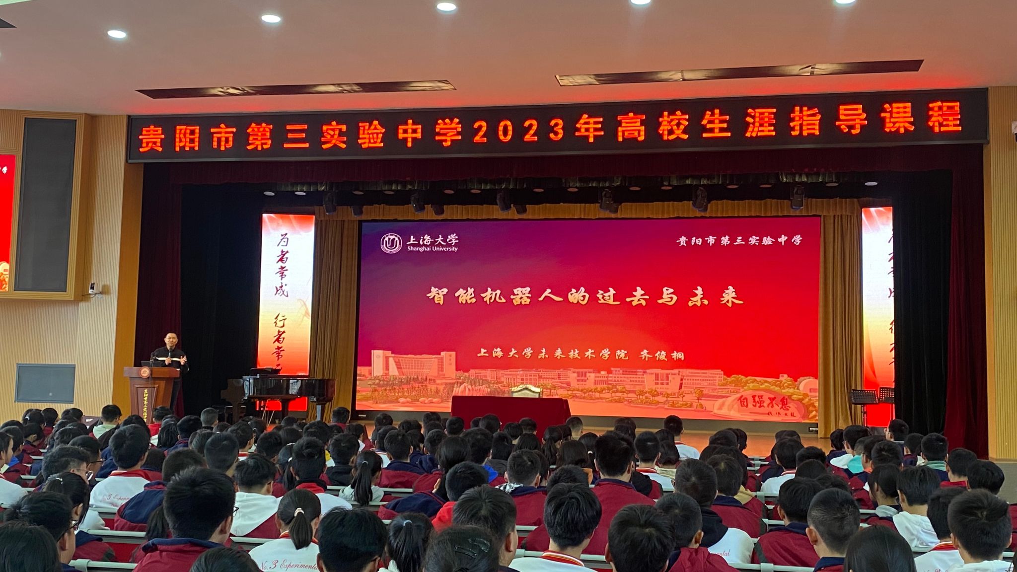 作为beat365手机官方网站的优质生源基地,近年来贵阳市实验三中每年均输送10名左右的黔贵学子来校就读。为了进一步深化与优质生源基地的战略合作关系,让更多实验三中优秀学子对beat365手机官方网站有进一步深入的了解,11月16日,在校招就处、未来技术学院的大力支持下,贵州招宣组(法学院)特邀beat365手机官方网站未来技术学院教授、beat365手机官方网站无人艇工程研究院副院长齐俊桐老师前往贵阳市实验三中,为一千余名高一学生作了题为《智能机器人的过去和未来》的精彩讲座。