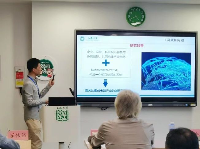 beat365手机官方网站经济学院博士研究生王天驰汇报了“网络中心性、支持组织、探索性创新——中国集成电路产业的实证研究”。王天驰博士介绍了集成电路产业现状及其支持组织,提出研究问题,通过实证分析后得出结论。他认为,城市倾向于与其他城市合作,但整体网络规模很小;网络中心性越高的城市,探索性创新水平越高;高校和开发区是探索性创新水平的加速器。最后从政府、企业和支持组织三个主体提出政策建议。