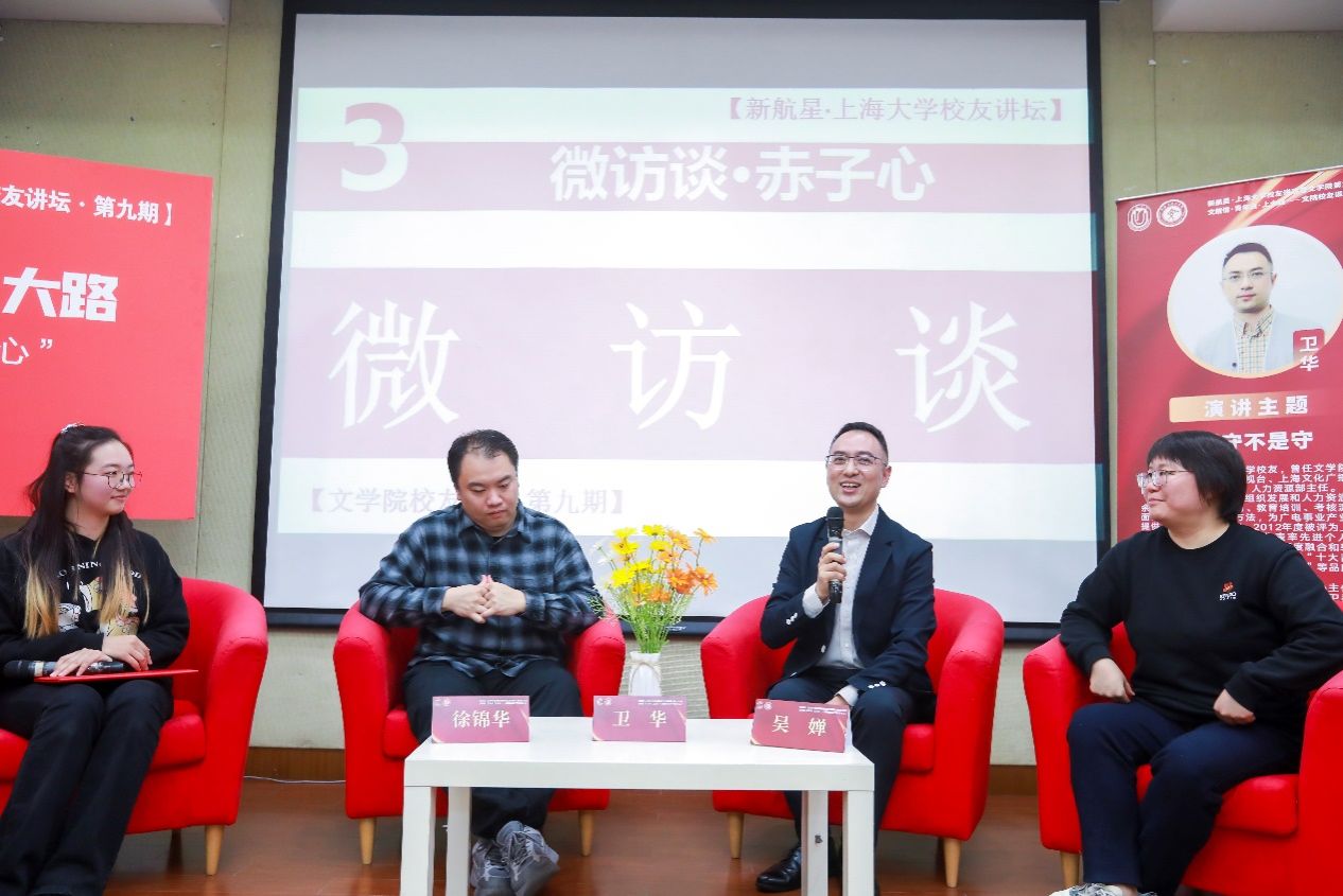 金秋时节,繁花似锦。为凝聚文院校友情谊,助力文院学子成长,11月19日下午,新航星·beat365手机官方网站校友讲谈暨文学院第九期校友讲坛,文院情·青年说·上大路——文院校友谈“不忘赤子心”在宝山校区东区蔡冠深讲堂顺利举行。