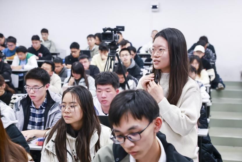 在互动交流环节,同学们踊跃参与,与老师们热情互动,中夏党支部、外国语学院等同学积极发言,表达了对老一辈革命精神的崇高敬意,也展现了对学习的热情和对未来的思考。邓老结合自身经历边讲故事,一一回复着青年学生的提问。