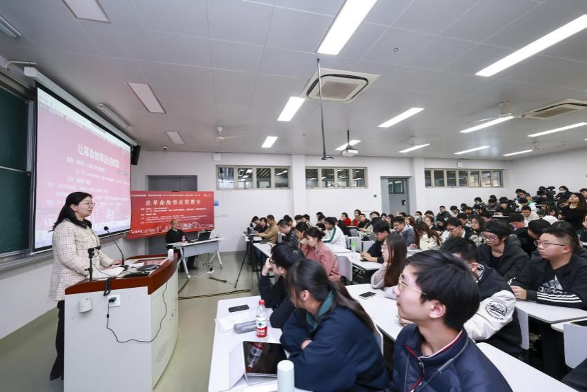 邓伟志老师从“老师恩,似海深”“同学情,一世情”“立大志,事竟成”“读书苦,读书乐”“两点论,讲辩证”“敢创新,百花放”六个方面分享了一串串引人入胜的革命故事,用红色故事点亮课堂,更点燃青年人的爱国志气。
