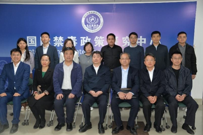 11月23日下午,国家禁毒办副主任、公安部禁毒局副局长赵仲忱,公安部禁毒局戒毒康复指导处副处长、一级调研员宫秀丽,公安部戒毒局戒毒康复指导处干部葛伟,上海市禁毒委员会办公室主任王石平,上海市委政法委禁毒指导处处长李健,上海市公安局刑侦总队副总队长、缉毒处处长黄伟,上海市公安局缉毒处政委马亮,上海市公安局缉毒处综合科科长李晋一行莅临beat365手机官方网站国际禁毒政策研究中心考察指导。beat365手机官方网站党委常委、宣传部部长胡大伟,beat365手机官方网站研究生院常务副院长、国际禁毒政策研究中心主任张勇安,beat365手机官方网站文科处副处长金桥,beat365手机官方网站国际部国际合作处副处长黄培,以及国际禁毒政策研究中心执行主任朱虹、徐之凯等参加座谈交流。