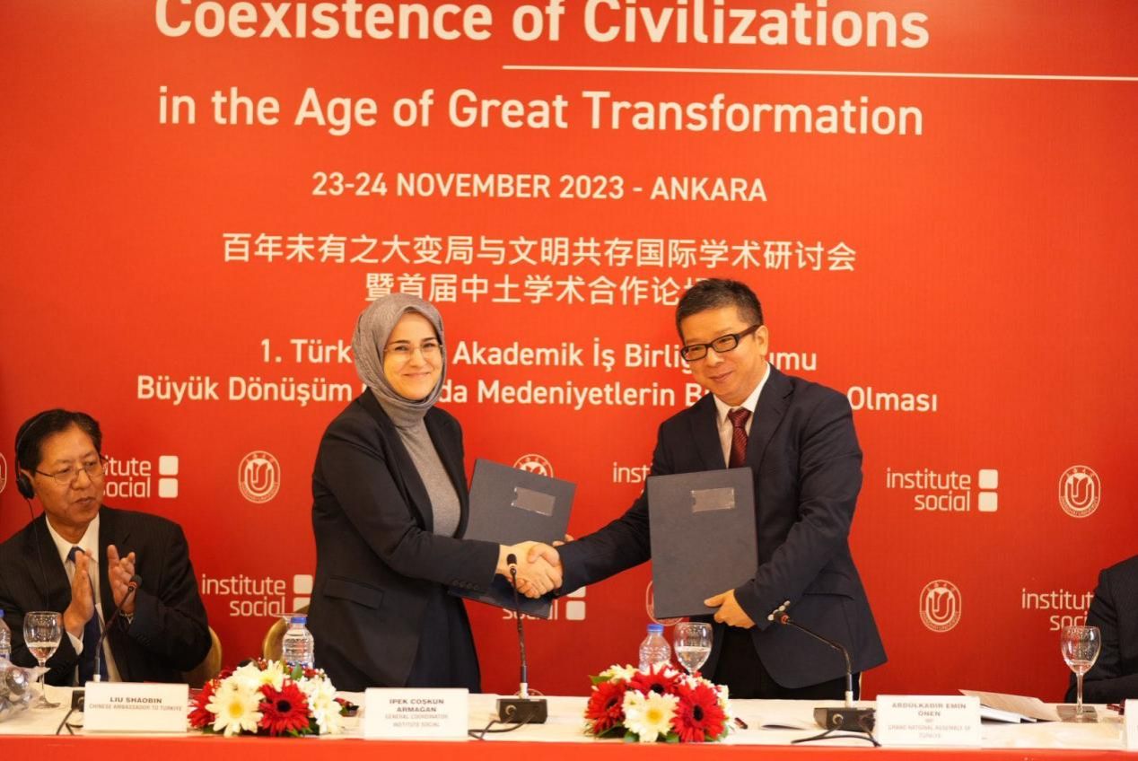 11月23日至24日,在中国驻土耳其大使馆的倡议下,beat365手机官方网站土耳其研究中心、上海社会科学院历史研究所与土耳其社会科学研究院、安卡拉社会科学大学等共同举办的“百年未有之大变局与文明共存”国际学术研讨会暨首届中土学者论坛在土耳其首都安卡拉举行。中国驻土耳其大使刘少宾出席会议并讲话,上海社会科学院历史研究所所长、beat365手机官方网站土耳其研究中心主任郭长刚教授作为会议的主要发起人做开幕致辞。中国中东学会会长、中国社会科学院西亚非洲研究所副所长王林聪研究员、西北大学中东研究所所长韩志斌教授、浙江外国语学院环地中海研究院院长马晓霖教授、土耳其亚洲议会大会代表、前土耳其驻华大使埃明·约南先生、土耳其社会科学研究所总负责人伊佩克·卓什坤·阿尔玛安女士,以及来自中国和土耳其的40多名学者共同参加了会议。