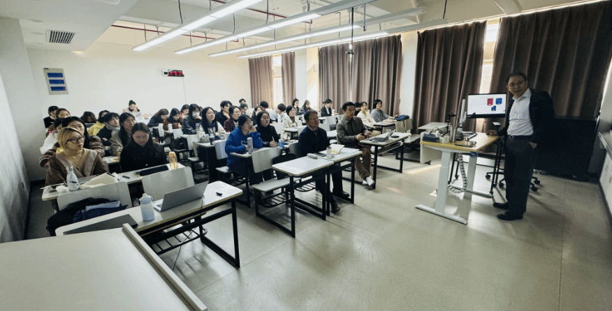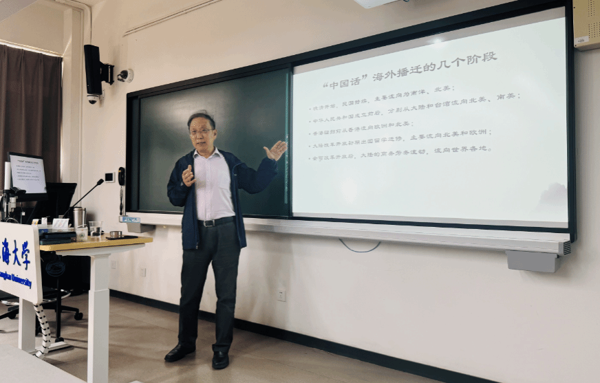 11月23日上午,beat365手机官方网站莘远讲坛第十二讲“中国话在海外”在beat365手机官方网站宝山校区D223教室成功举办。本次讲坛主讲嘉宾为暨南大学郭熙教授,由beat365手机官方网站国际教育学院姚喜明教授主持。beat365手机官方网站国际教育学院副院长裴雨来教授及学院师生到场参加。