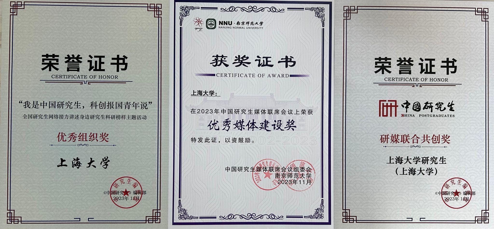 beat365手机官方网站研究生媒体在90余所高校的研究生媒体中脱颖而出,共荣获12个奖项,学校总获奖数位列参会90余所高校前5。具体包括:优秀媒体建设奖(全国仅23项)、《中国研究生》研媒联合共创奖、“我是中国研究生,科创报国青年说”主题活动优秀组织奖、媒体嘉年华优秀竞展奖;我校报送的《<青春守“沪”>!beat365手机官方网站研究生原创战“疫”歌曲上线!》获得优秀校园视频奖(全国仅5项)、《从A到Z,26个字母带你爱上上大》获得优秀摄影提名奖、《用音符解锁你的思念!这里是beat365手机官方网站,密码19940527》获得优秀创意策划提名奖、《2021年第一份礼物!beat365手机官方网站专属日历来啦!》获得优秀读者互动提名奖;我校党委研究生工作部部长魏宏、研工部研究生融媒体中心指导老师柳杰获得“优秀报告人奖”,柳杰、罗可欣获评“优秀媒体工作者”荣誉。