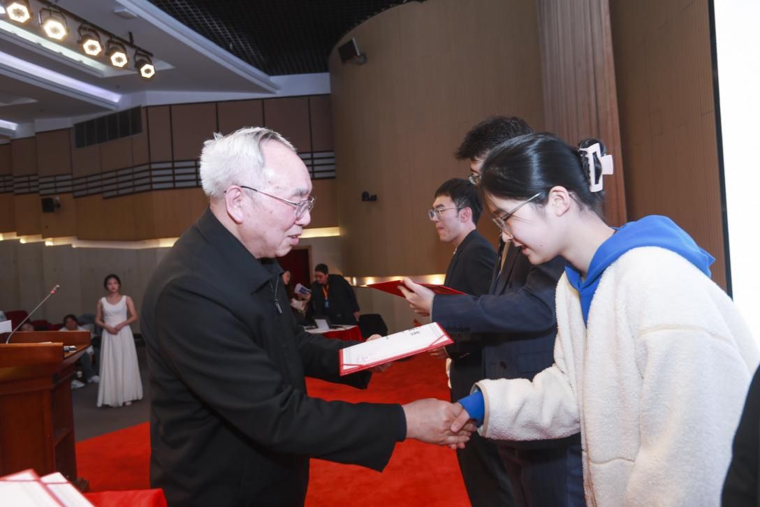 孙晋良院士为尚理书院、理学院白郅昂等22名一等奖获得者颁发获奖证书。