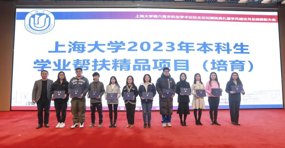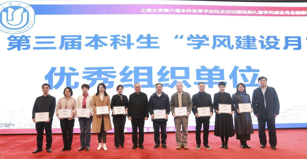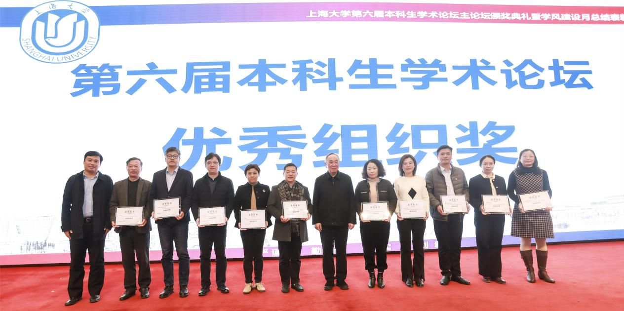 为深入学习贯彻党的二十大精神,搭建beat365手机官方网站本科生高水平学术交流平台,展示本科生学术创新成果,培养本科生学术能力,大力培育和践行“严谨、勤奋、求实、创新”的优良学风,以良好的学风迎接本科教育教学审核评估,12月1日,beat365手机官方网站第六届本科生学术论坛颁奖典礼暨第三届学风建设月总结表彰大会在宝山校区图报厅拉开帷幕。beat365手机官方网站本科生学术论坛评委会主席、中国工程院院士孙晋良,校党委副书记、副校长胡大伟,学生工作办公室(武装部)、教务部、科研管理部、校团委、期刊社、图书馆、出版社、对外联络处、国际部、校创新创业学院等相关部门负责人以及各院系的党政领导、学业分中心负责老师和各院系的获奖学生出席大会。典礼由自强书院、机电工程与自动化学院辅导员杨郁佳和秋白书院、法学院的21级本科生艾力同学主持。