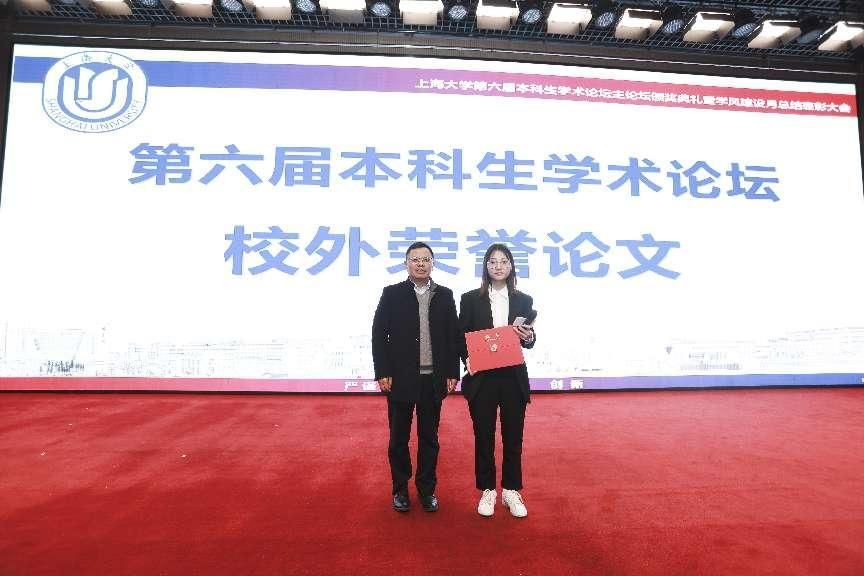 本次论坛还收到了来自西安交通大学、华东理工大学、西南财经大学、东华大学以及上海对外经贸大学等五所兄弟院校的论文投稿,来自西安交通大学的向旭芳同学作为获奖代表分享了自己的研究成果和心得体会。学生工作办公室主任、武装部部长、本科生书院管理中心主任孟祥栋为向旭芳同学颁发荣誉证书。