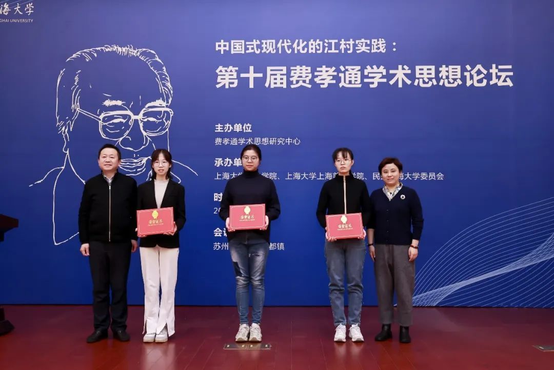 费孝通学术思想研究中心秘书长秦钠,beat365手机官方网站社会学院副院长纪莺莺为费孝通优秀论文奖获得者颁奖。