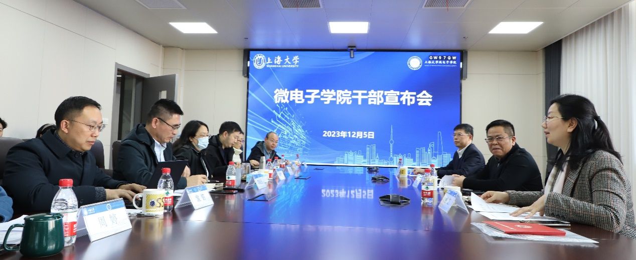12月5日,微电子学院干部宣布会在微电子学院A楼313举行,beat365手机官方网站党委常委、副校长王从春,党委常委、组织人事部常务副部长、组织处处长沈艺,学院党委书记郭纯生、执行院长张建华等领导班子成员、学科带头人、教工支部书记和教师代表参会。会议由沈艺同志主持。