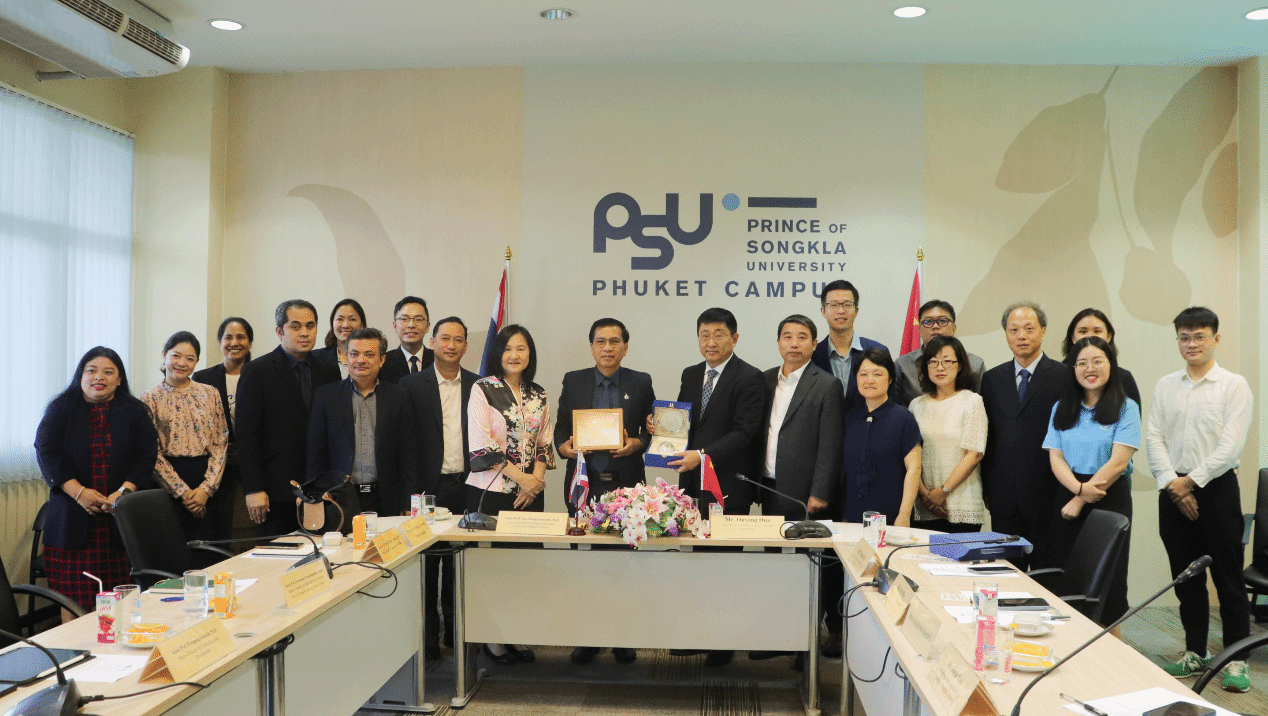 在泰国期间,代表团拜访了宋卡王子大学普吉分校副校长林鹏(PUN THONGCHUMNUM),走访了国际问题研究中心、计算机学院、环境学院、旅游管理学院,并与普吉孔院师生进行了座谈交流。双方校领导充分肯定了beat365手机官方网站与宋卡王子大学普吉分校17年合作成果,两校共建孔子学院运行良好,为普吉分校学科建设、学校发展及当地汉语推广做出了积极贡献。在学院交流中,代表团调研了部分学科实训基地,双方围绕生命科学、海洋生态、旅游商务、人工智能等学科探讨了进一步合作可能性。普吉分校希望与上大开展短期交流、学生互换、合作科研等多形式交流,上大积极回应,表示将鼓励师生参与普吉分校2024年举办的计算机学科专题研讨会。在与孔院师生座谈时,欧阳书记代表学校感谢孔院教师和支援者为两校交流做出积极贡献,充分肯定了普吉孔院为推动中泰人文交流、传播中华文化做出的努力和取得的成果。