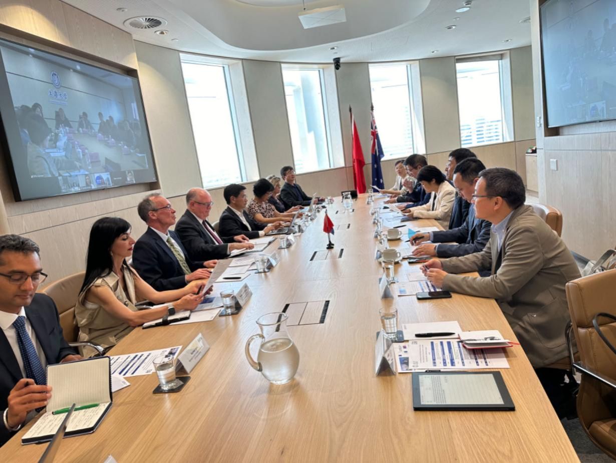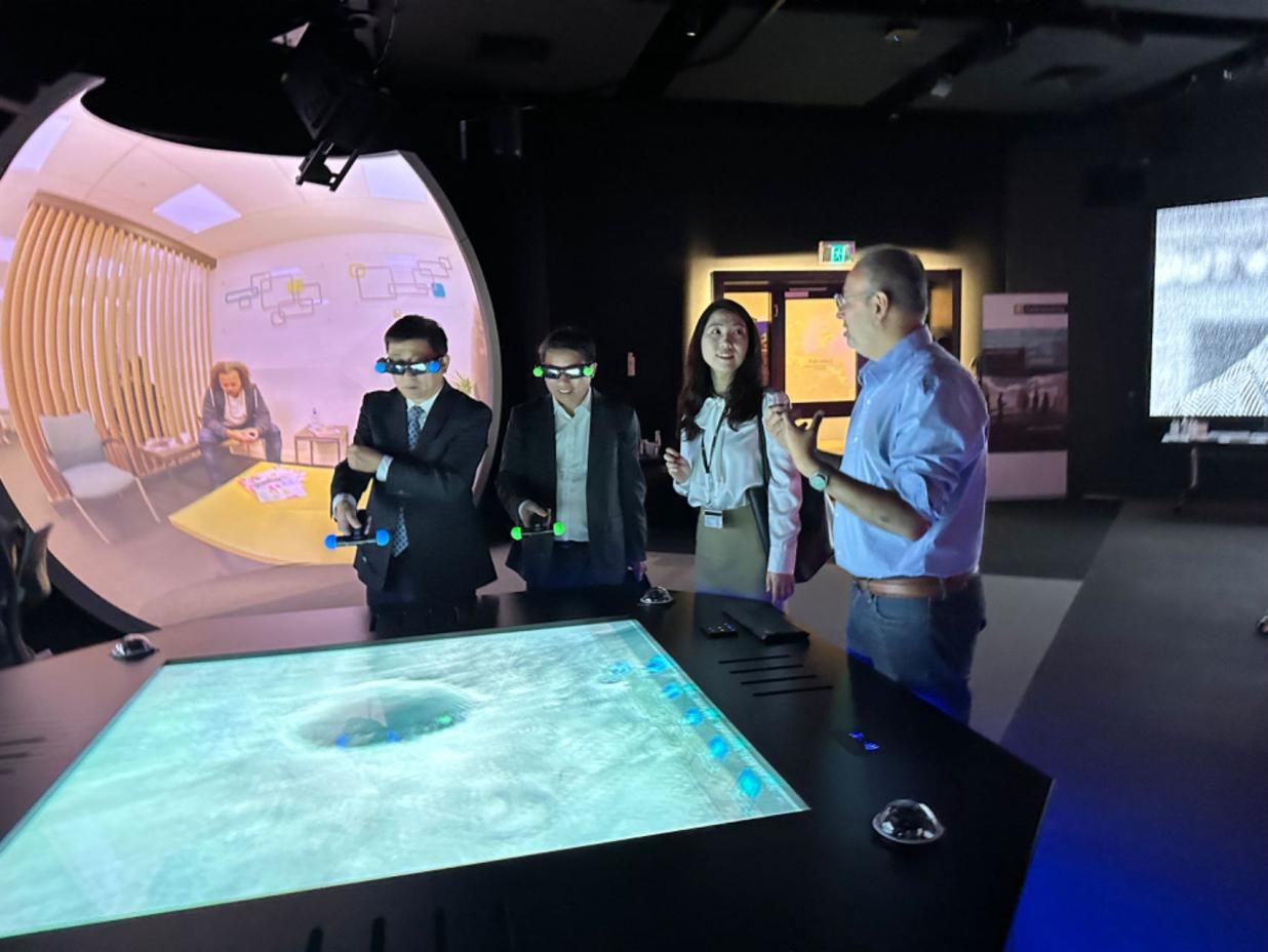 访问科廷大学期间,代表团拜会了该校教务长柯尔本(Jemery Kilburn)、全球事务协理副校长张啸天,双方简要回顾了年内科廷大学代表团两次访沪成果。科廷大学法律财金学部、人文社会学部、科学工程学部国际交流负责人与我校生命科学院负责人分别介绍了学院设置、学科建设和国际化情况。双方同意进一步加深合作,推动学生交换协议尽快落地,重点聚焦设计创意、数学、材料、会计金融、运动医学等领域合作交流。随后,代表团参观了科廷大学沉浸式交互体验实验室。
