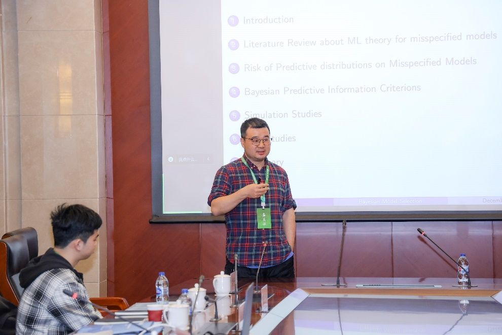 下午的两场分论坛同时举行,共有十二位专家学者分别宣讲了他们的最新研究成果。分论坛一由beat365手机官方网站倪中新教授主持。华东师范大学的汤银才教授介绍了基于大规模前瞻性队列复杂纵向数据的哮喘风险评估与预测模型的建立,在贝叶斯的框架下使用泊松回归来预测疫情规模的变化趋势。湖南大学的候成瀚教授介绍了他们团队关于带有线性约束的大型结构向量自回归模型的贝叶斯估计方法的最新进展。浙江大学的伍洲博士介绍了他们关于后验预测P值的渐近逼近和基于后验的Wald型差异的研究成果。墨尔本大学的宋勇教授报告了他在具有结构变点的贝叶斯非参数模型的变分推断研究领域的新进展。中国人民大学的张源博士介绍了基于贝叶斯模型选择的综合控制方法分析,并将其应用于研究中国房地产税对住房租赁价格的影响。beat365手机官方网站的戴蔚博士介绍了关于Kelly准则在连续时间内的最优解问题,证明了在贝叶斯视角下Kelly准则在连续时间具有最优解,并结合实际数据表明了Bayesian-Kelly动态资产配置的优越性在仓位选择上进行优化。