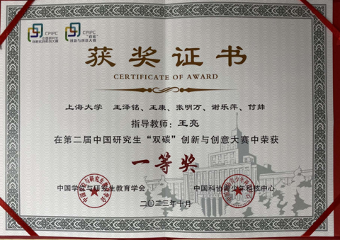 在导师的悉心指导与团队的协同努力下,非常荣幸地获得了中国研究生“双碳”创新与创意大赛一等奖。这个荣誉的背后,是无数日夜的辛勤付出和团队的无私支持。感谢导师的智慧启迪,感谢团队的默契配合,也感谢大赛的机会,让我们得以为双碳目标贡献自己的力量。我们将继续砥砺前行,秉承创新精神,为构建可持续低碳社会而努力奋斗。这个奖项激励我们更加坚定地追求环保创新,为未来的可持续发展贡献更多力量。再次感谢所有支持与鼓励我们的人,谢谢!