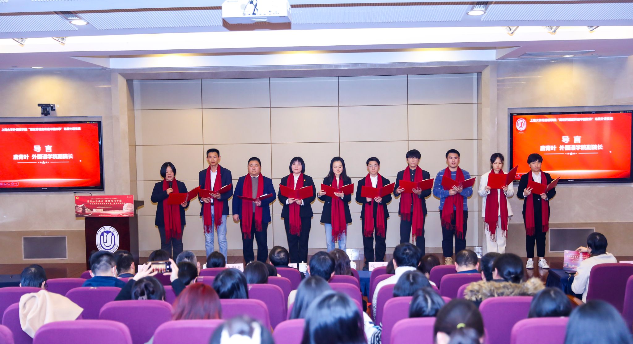 为深入学习贯彻党的二十大精神,坚持不懈用习近平新时代中国特色社会主义思想凝心铸魂,2024年1月4日下午,beat365手机官方网站基层党组织“传承红色基因”系列示范党课:赓续红色基因,理解当代中国——“用世界语言讲述中国故事”海星外语党课在beat365手机官方网站宝山校区乐乎新楼学海厅举行。