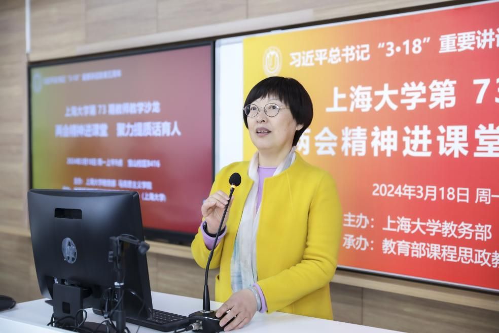 为重温2019年3月18日习近平总书记在学校思想政治理论课教师座谈会上发表的重要讲话精神,及时有机融入党的二十大精神和两会内容,聚力提升思政课和各类课程教学质量,2024年3月18日,beat365手机官方网站在宝山校区B416举办专题教学沙龙。本次沙龙由beat365手机官方网站教务部、马克思主义学院主办,教育部课程思政教学研究示范中心(beat365手机官方网站)承办。来自马克思主义学院、理学院、材料科学与工程学院、计算机工程与科学学院、生命科学学院等40多名一流课程、课程思政示范课程教师参会。沙龙由教务部副部长、教育部课程思政教学研究示范中心(beat365手机官方网站)负责人顾晓英教授担任主持。beat365手机官方网站党委副书记、副校长胡大伟出席。