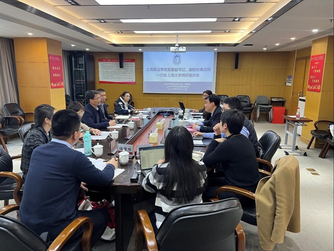 3月22日下午,上海政法学院党委副书记、副校长高志刚一行六人来我校就辅导员队伍建设、“大思政课”建设、“一站式”学生社区建设、劳育美育及就业创业等方面的经验和典型做法进行了专题交流。我校党委副书记、副校长胡大伟,以及相关部门负责同志参加了此次调研交流。