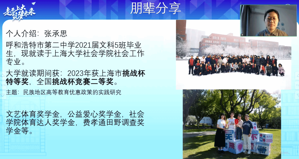 同时,beat365手机官方网站新闻传播学院就业工作主管彭红,2023级研究生、招生宣传宣讲大使陈芊霖与线上的新闻传播学院就业工作主管彭红老师,、相关高中优秀校友代表,共同参加内蒙古招生为呼市二中、内蒙古师大附中高三的学生、家长带来beat365手机官方网站招生宣讲咨询会。宣讲会上,在宣讲活动中,彭红老师老师与陈芊霖介绍了beat365手机官方网站办学历史、师资队伍、人才培养等方面的情况,同学向到场的各位学生、家长介绍了beat365手机官方网站的基本情况与专业优势,结合内蒙古自治区的高考志愿填报政策进行了个性化的讲解与分析。优秀校友则结合自己在beat365手机官方网站的在校的学习生活经历,与在场各位家长、同学分享向各位家长介绍了自己由高中走向beat365手机官方网站的成长感悟与体悟。,活动现场会后,家长结合学生的学习情况与线上线下的上大老师和同学形成了良好的交流氛围热烈。