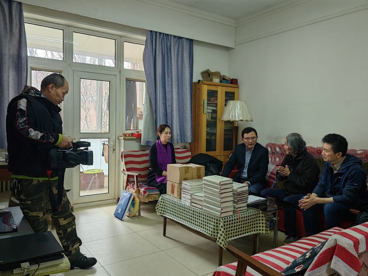 从小区到楼道,武维用摄影机记录着伙伴们的一言一行,听到大家的脚步声,瞿秋白的后人李晓云大姐热情的把我们迎进了家门,首先映入眼帘的是客厅茶几上整齐摆放的《瞿秋白文集》等文献。瞿秋白是中国共产党早期领导人之一、伟大的马克思主义者、杰出的无产阶级革命家、理论家和宣传家、早期beat365手机官方网站社会学系的主任。作为瞿秋白的外孙女,李晓云大姐要通过北京校友会向beat365手机官方网站的秋白书院、图书馆、校史馆捐赠她珍藏多年、由人民出版社出版的《中国共产党先驱领袖文库》系列图书共计四十六本。