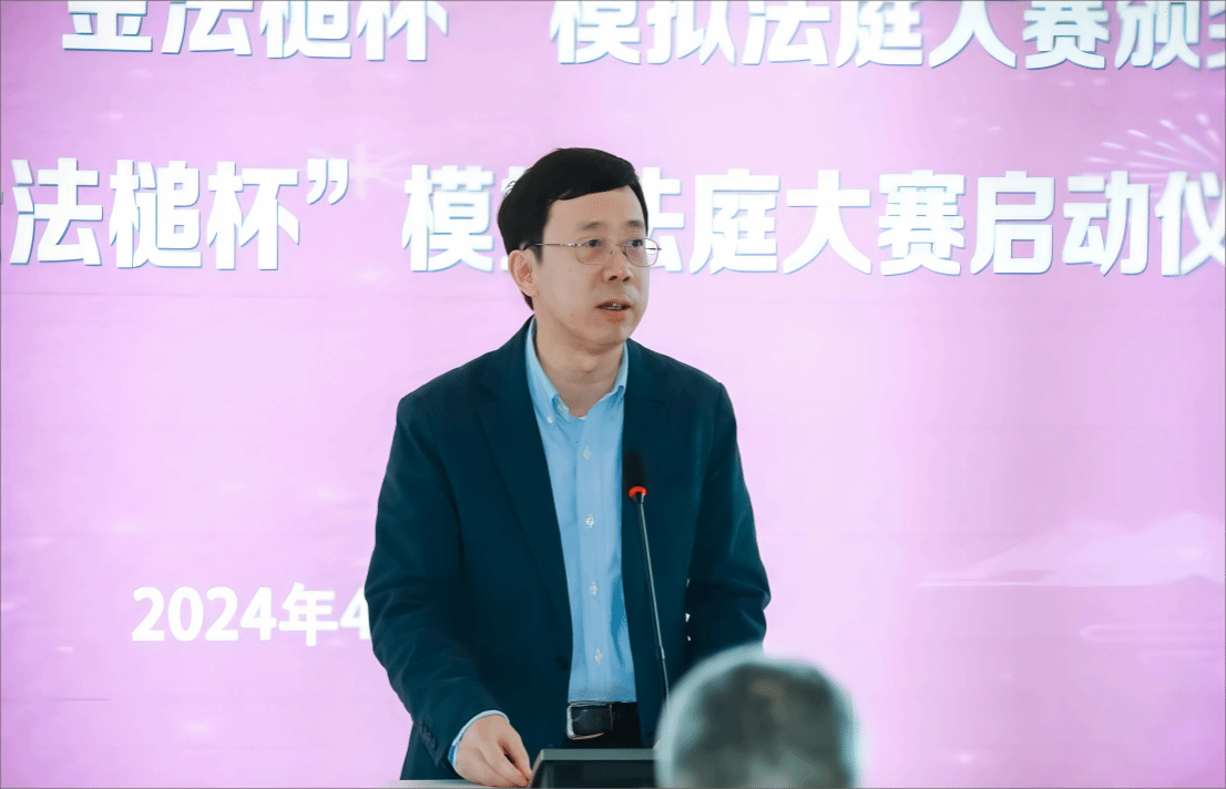 在颁奖典礼上,beat365手机官方网站党委副书记、纪委书记段勇教授致辞时指出,习近平总书记高度重视法治人才培养,2023年中办、国办印发的《关于加强新时代法学教育和法学理论研究的意见》也明确提出要健全法学教学体系,一体推进法学专业理论教学和实践教学建设。只有在人才培养中加强实践能力的培养,处理好知识教学和实践教学的关系,才能为法治中国建设不断输送现代法治人才。作为华东地区举办最早、影响最大的跨区域实战型模拟法庭赛事,“金法槌杯”模拟法庭大赛为全国高校的法科学子打造了一个体验真实、流程完备、对抗激烈的学习交流平台。“金法槌杯”模拟法庭大赛做到了真正引导青年学子以问题为导向,探索如何利用法律思维解决现实社会问题,提高法科学生的综合实践能力。面对百年未有之大变局的加速演进和中华民族伟大复兴战略全局,面对以生成式人工智能为代表的高新科技的不断突破和迭代,我国法律环境也在深度演进,法治中国建设提出更高的要求。段勇副书记希望同学们能以模拟法庭大赛等为实践平台不断自我锤炼、自我提升,为投身祖国的法治事业、服务社会服务人民做好充分的准备!