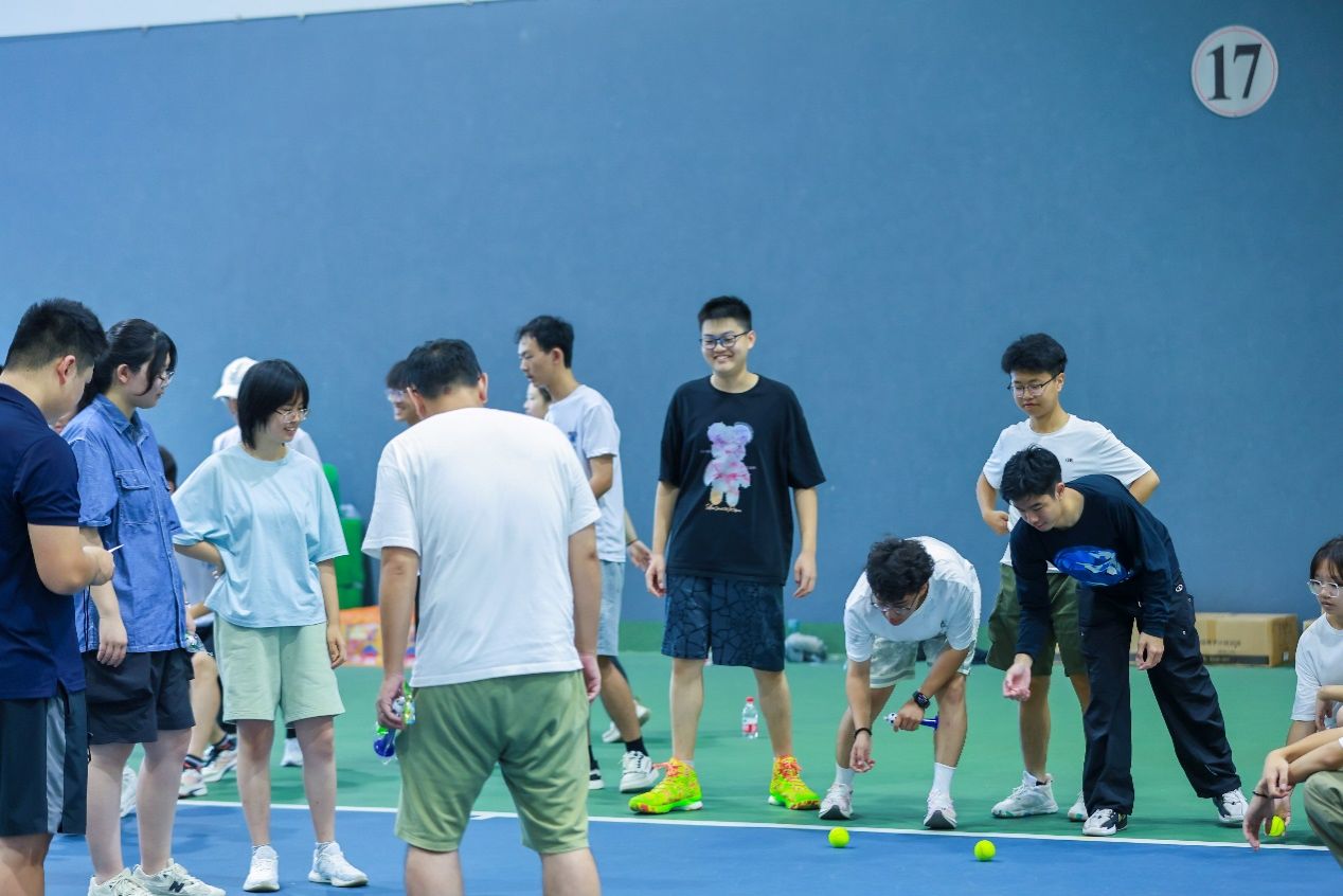 热身完毕,赛场已蓄势待发,激情与期待在空气中酝酿至沸点。在期待目光之下,刘兵老师为本次活动发球、开赛。网球划出一道完美的弧线,比赛的哨声也随之响起,标志着这场充满趣味与挑战的较量正式拉开序幕。