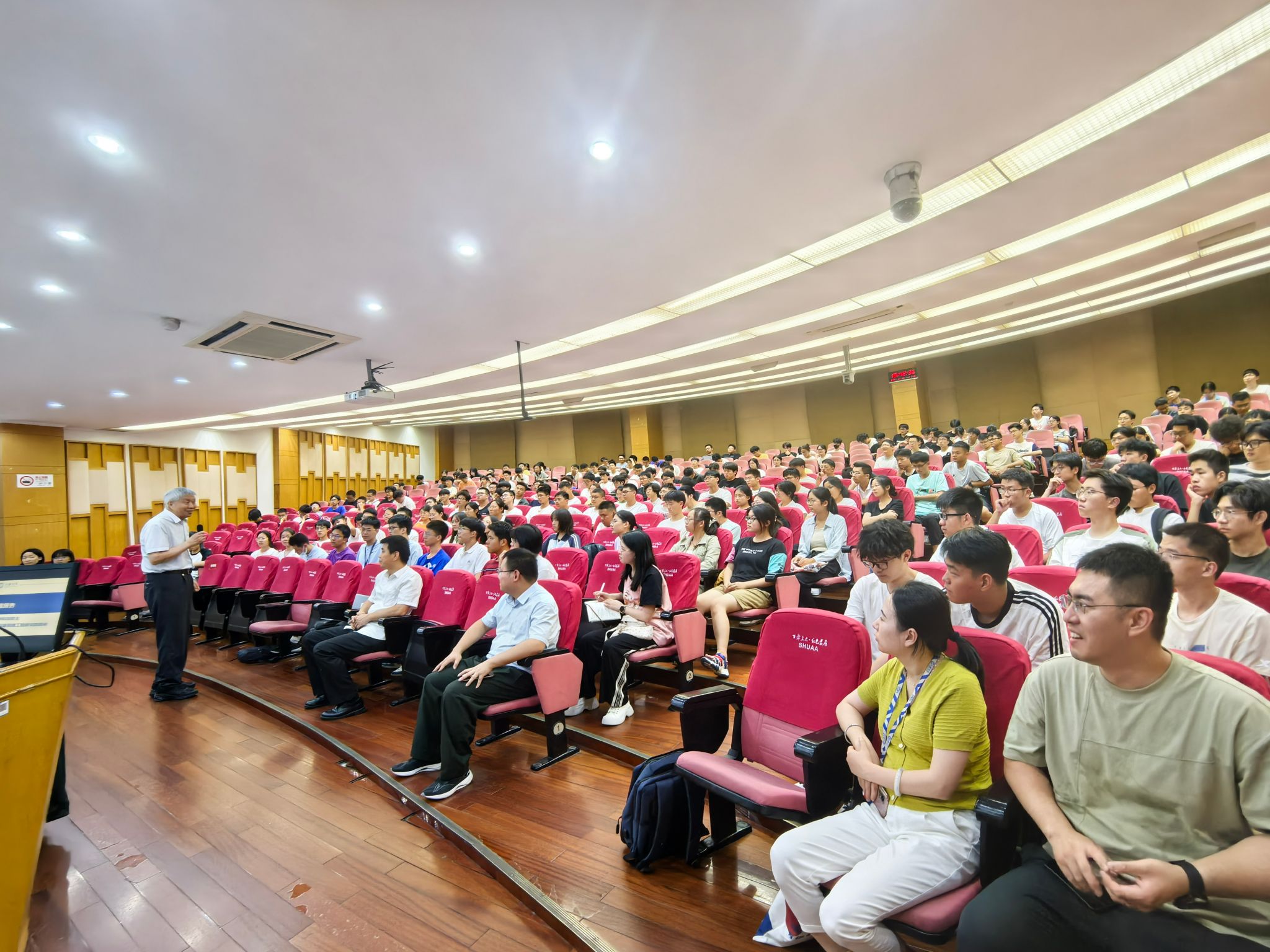 2024级本科新生及研究生新生代表王佳琪、闫雪涛向张统一院士送上鲜花,以此来感谢张统一院士的殷殷教诲。冯书记代表所有在场师生向张统一院士表示感谢。两院学子将牢记张院士的叮咛教导,以自信乐观的姿态拥抱AI for science的时代趋势保持热爱,为科学技术发展、国家富强和人类进步贡献智慧和力量。(撰稿:王晓雪)