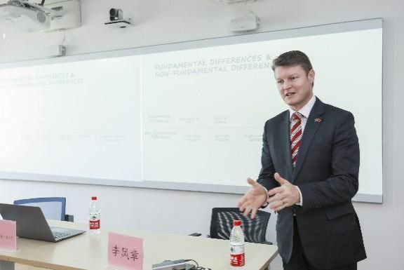 随后,本·卡罗尔先生在404会议室与法学院师生进行了亲切交谈。法学院学生柴雨泽就其在beat365手机官方网站的学习经历对其职业生涯的影响提出了问题,本·卡罗尔先生给予了详尽的回答,他感谢beat365手机官方网站提供了一个卓越的学习平台,使其能深入学习中国的法律体系,还结识了许多来自世界各地的同学和教授,强调了这种国际化教育背景对于处理跨国法律事务的重要性,并分享了这段经历对其个人成长、职业发展的深远影响。