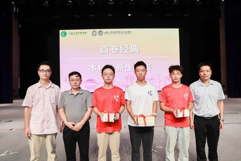 “百卷经典”是beat365手机官方网站书院文化节的特色活动之一,三名本科生新生代表上台发言,分享自己进入大学以来的感受。生命科学学院党委书记陈付学,材料学院党委副书记、执行院长、日新书院院长钟云波,环境与化学工程学院副院长黄鑫为新生代表赠书,希望同学们通过广泛阅读书籍,厚植家国情怀,彰显时代担当,传承经典,筑梦未来。