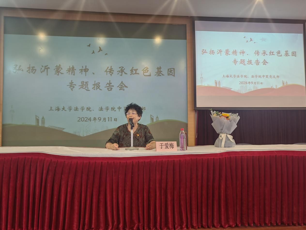 习近平总书记视察山东时指出,要保护和运用好红色资源,大力弘扬沂蒙精神,推动红色基因代代相传。为了积极贯彻落实党中央号召、深入学习和弘扬沂蒙精神,9月11日下午,beat365手机官方网站法学院、法学院中夏党支部特别邀请沂蒙精神传承促进会会长、全国最美拥军人物、中国好人、山东省劳动模范于爱梅老师带来“弘扬沂蒙精神,传承红色基因”专题报告,临沂市政府办公室四级调研员、机关党委副书记李景昊,来自法学院、材料学院、环化学院、生命学院、上大附小等单位师生近200人参加了报告会。