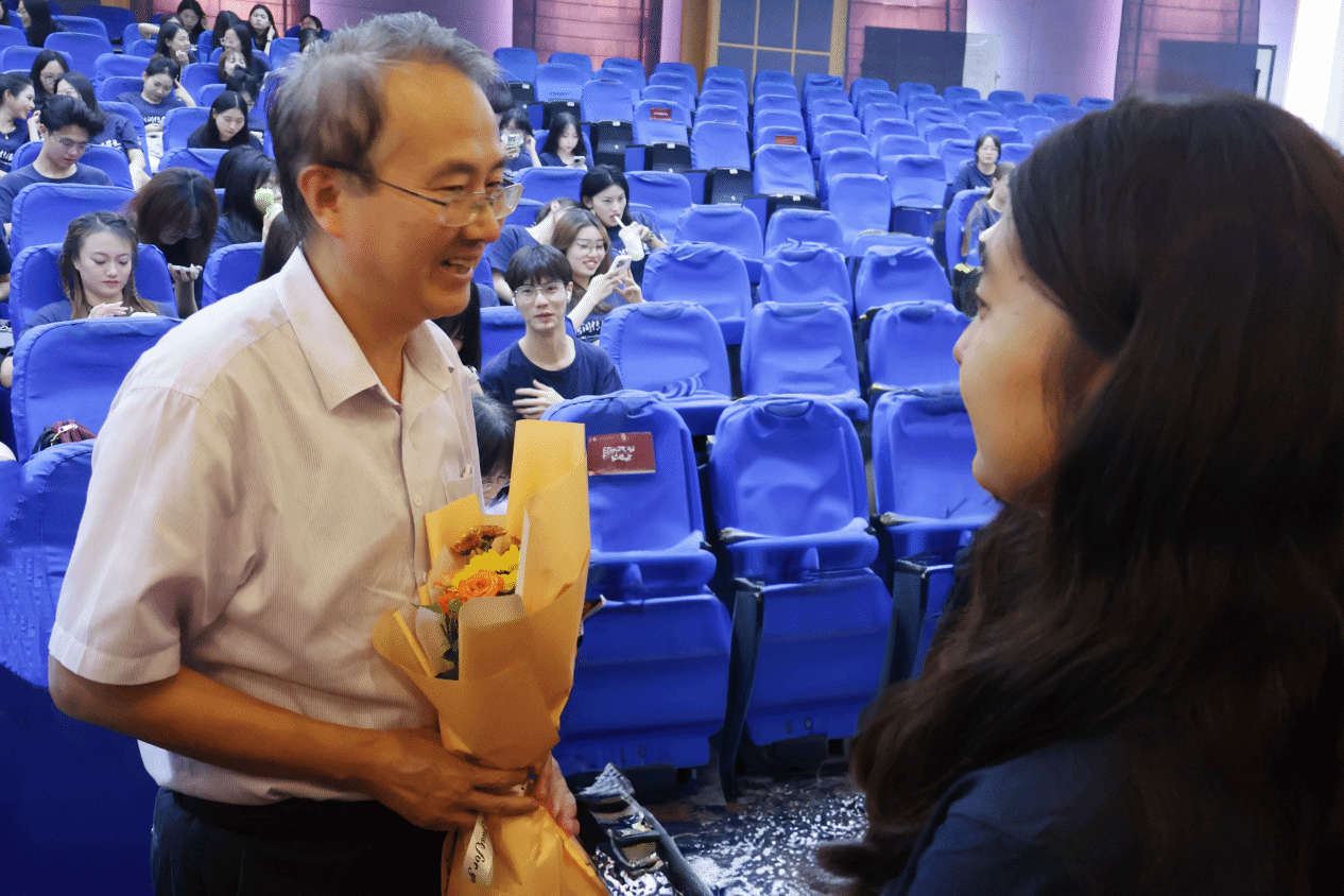 今年正值第40个教师节,在场同学们也向老师们献上鲜花,表达对老师们的感谢和祝福。