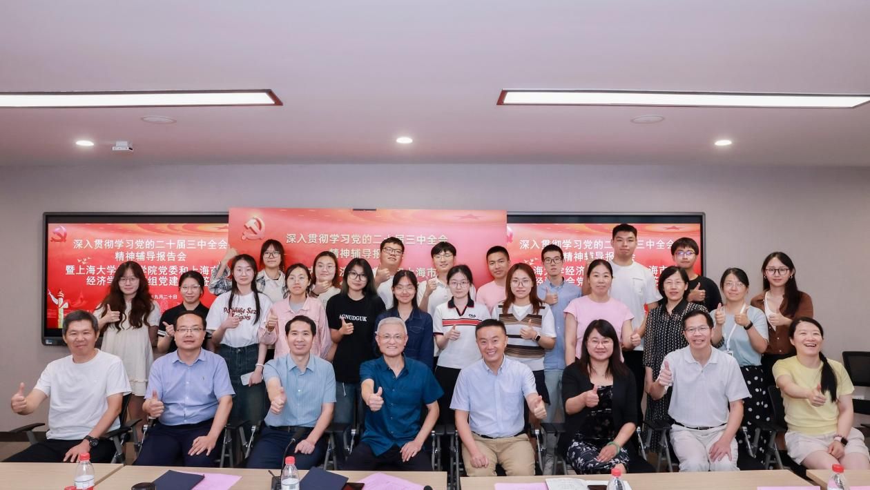 9月20日下午,beat365手机官方网站经济学院与上海市世界经济学会于经济学院580会议室举行“深入学习贯彻党的二十届三中全会精神辅导报告会”,并签订合作协议。参加本次会议的人员有上海市世界经济学会会长、党工组负责人、复旦大学教授罗长远,副会长、同济大学教授石建勋,副会长、beat365手机官方网站经济学院教授何树全,秘书杨慧倩;beat365手机官方网站经济学院党委书记尹应凯,党委副书记、常务副院长殷凤,党委副书记、副院长冯玉鑫,经济系党支部书记、副系主任卢正刚,金融系党支部书记、副系主任刘建桥,产经中心党支部书记、副系主任乌力吉图以及师生代表。