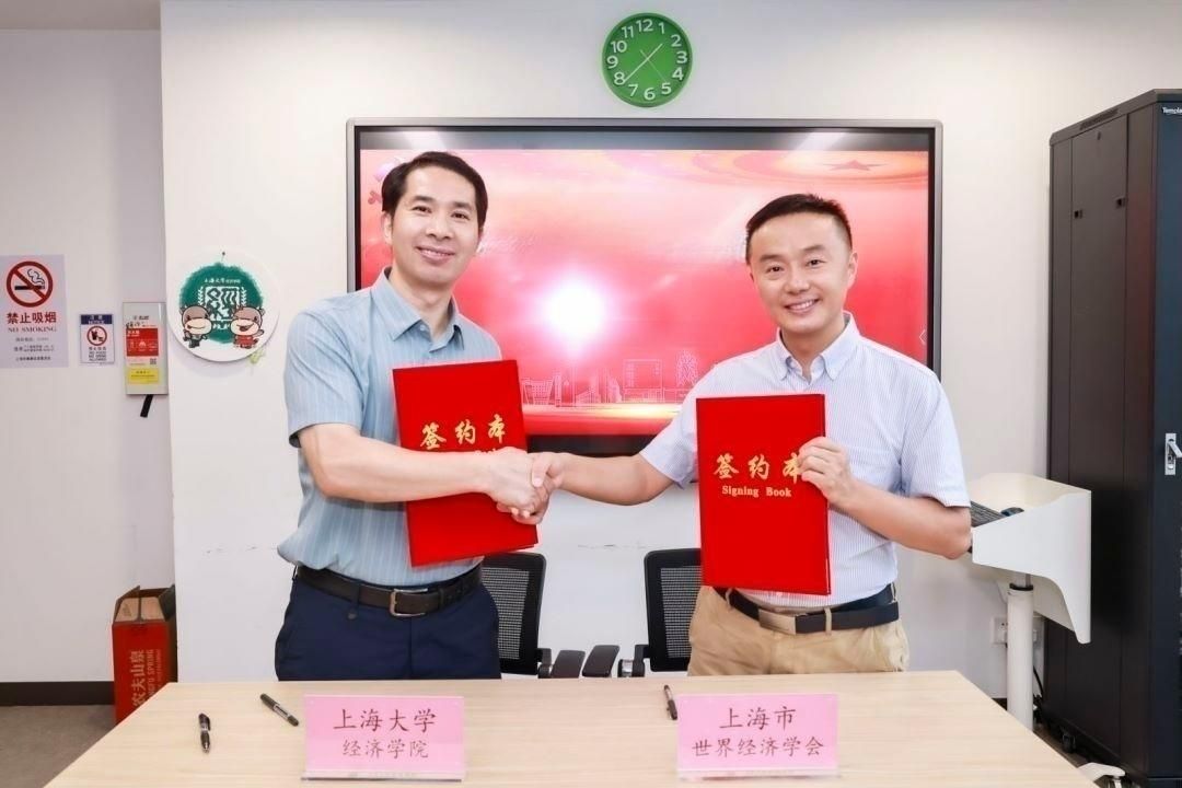 随后,上海市世界经济学会会长罗长远与beat365手机官方网站经济学院党委书记尹应凯共同签订合作协议,并合影留念。这一举措标志着双方将在科学研究、智库建设等工作深入合作,促进双方优势资源共享、合作共进。