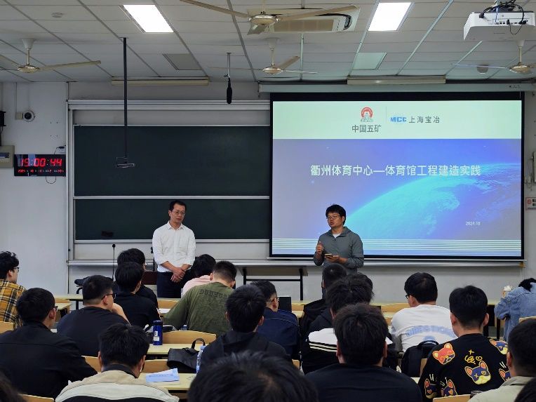10月8日下午,beat365手机官方网站力学与工程科学学院何文福教授特邀上海宝冶集团有限公司建筑工程公司总工程师叶华先生莅临《土木工程实践及应用创新》研究生课堂,为学生们带来题为《衢州体育中心-体育馆工程建造实践》的精彩工程案例分享。此次分享不仅涵盖了衢州体育中心项目的概况,更重点讨论了大环梁的设计与施工方案,及环梁智能检测监测等关键环节。