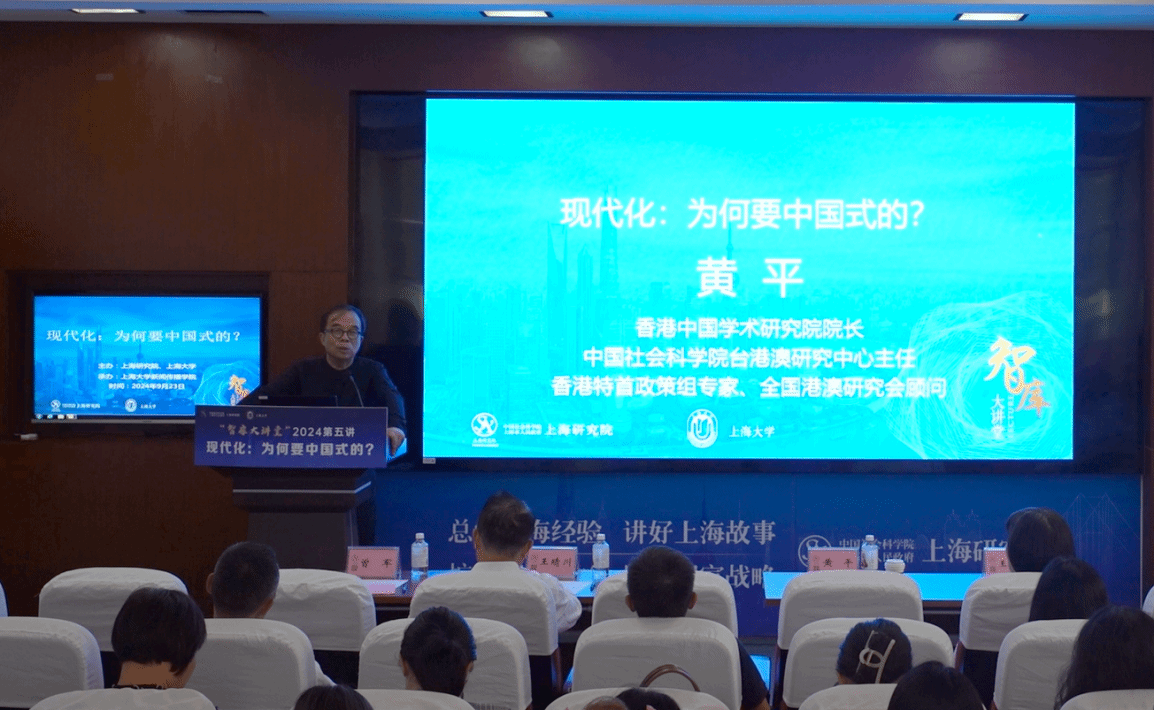 近日,上海研究院“智库大讲堂”2024年第五期在beat365手机官方网站延长校区北大楼举行。本次大讲堂由beat365手机官方网站新闻传播学院承办。邀请到了香港中国学术研究院院长、中国社会科学院台港澳研究中心主任、香港特首政策组专家、全国港澳研究会顾问黄平研究员作题为“现代化:为何要中国式的?”学术报告。