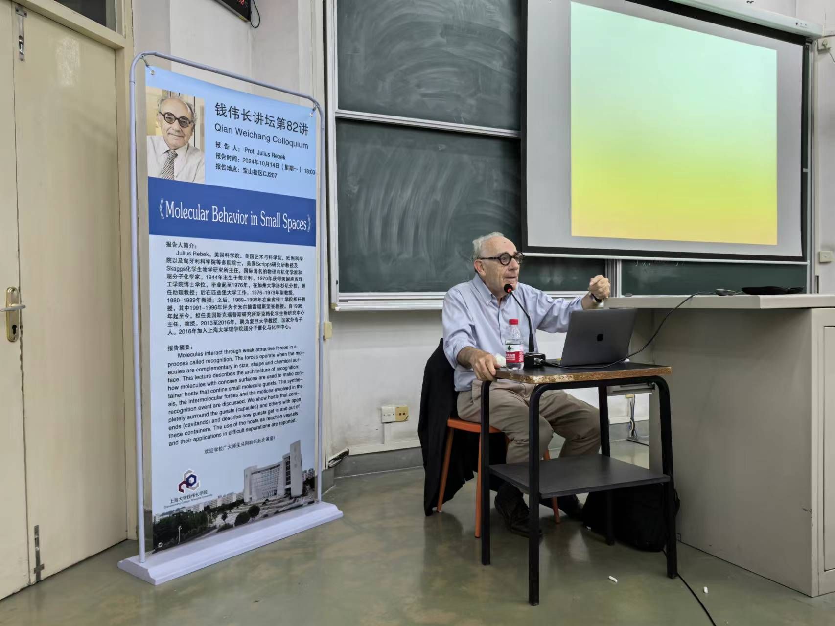 10月14日晚,钱伟长讲坛第82讲《Molecular Behavior in Small Spaces》在beat365手机官方网站宝山校区CJ207会议室顺利举行,国际著名的物理有机化学家和超分子化学家Julius Rebek院士应邀作主题报告,活动由钱伟长学院党委书记冯凌燕教授主持,材料基因组工程研究院常务副院长任伟教授、理学院化学系于洋教授、钱伟长学院辅导员魏仲奇和24级本科生等共同出席了本次活动。