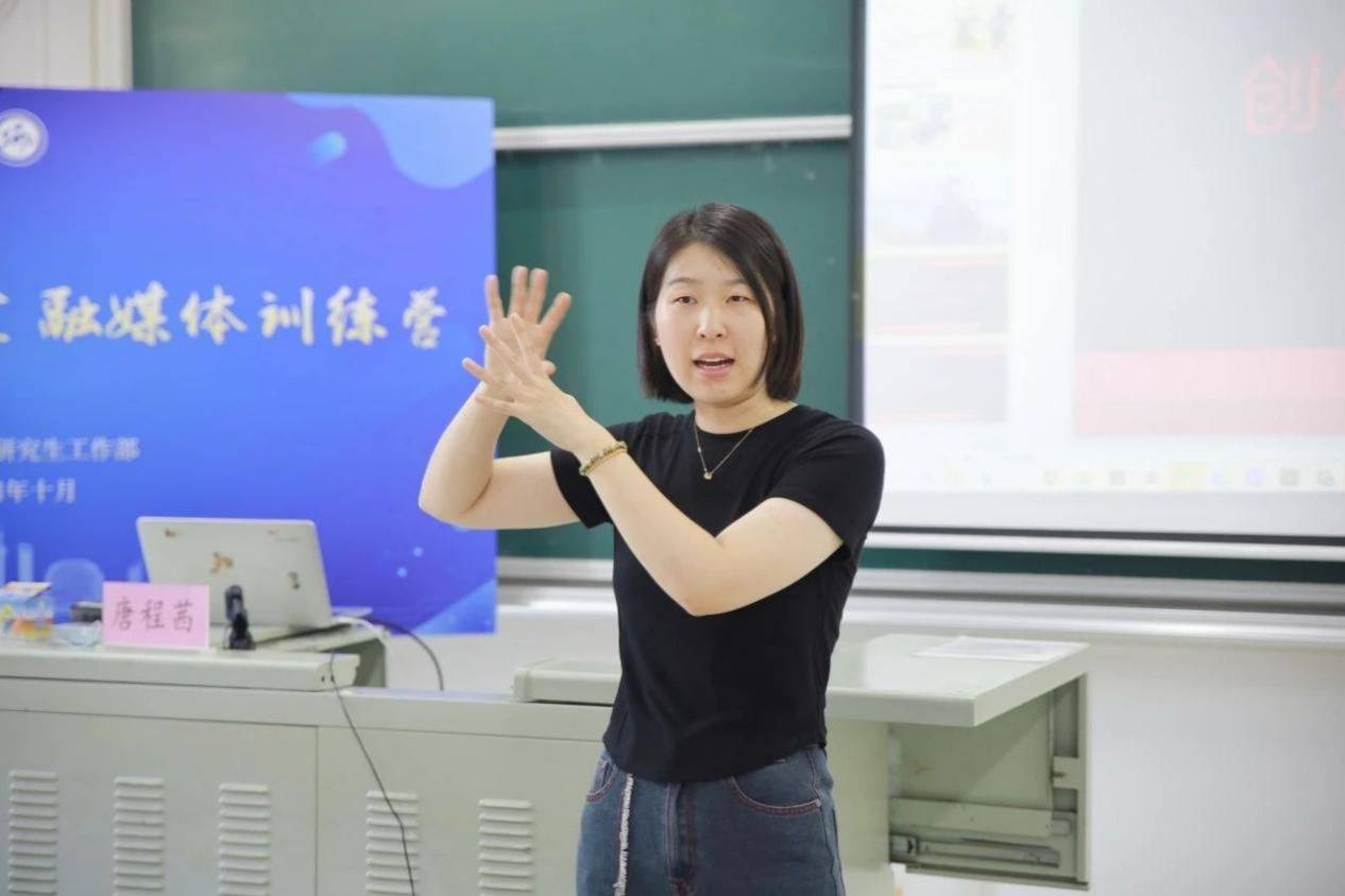 复旦大学研工部新媒体中心“复旦研究生”新媒体主编席澜心老师聚焦研究生校园媒体的选题策划与运营,以“复旦研究生”微信公众号为例,向我校研究生融媒体骨干传授了宝贵经验。席老师不仅详细讲解了如何紧跟国家热点、校园热点、网络热点,如何策划兼顾弘扬主流价值观与同学们的阅读兴趣的推文,还通过对高阅读量作品的分析,指导大家如何精准把握研究生群体的信息需求,打造信息规范、时效突出、形式创新的高质量信息推送。此外,席老师还分享了系列优质文创设计作品,为我校研究生媒体建设工作带来了新创意、新启发。